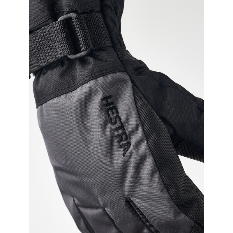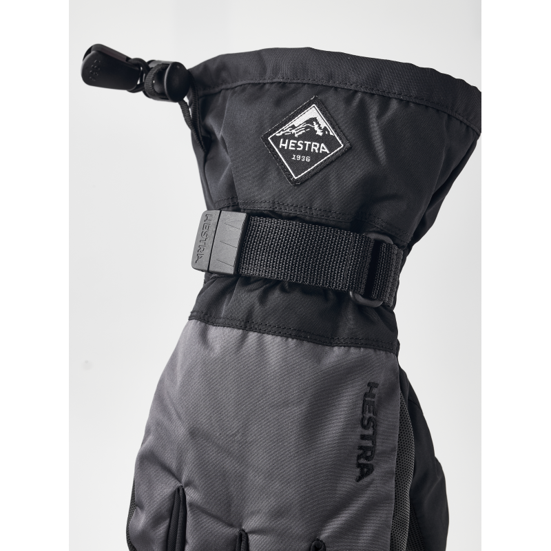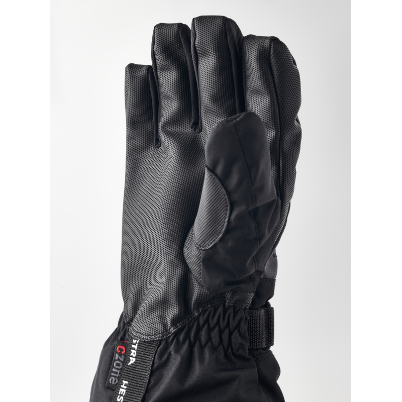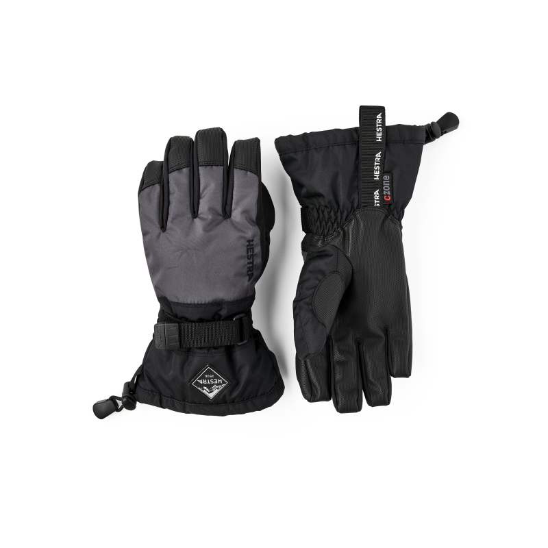 En varm og komfortabel barnehanske for skikjøring, lek og utendørsaktiviteter i kaldt vintervær. En av Hestras mest populære hansker for junior, sydd i slitesterk polyester med vanntett og pustende CZone-membran og en lengre mansjett som holder snøen ute. Fingertupper og håndflate er forsterket med PU-belagt syntetisk materiale for ekstra slitestyrke og godt grep på staver, akebrett og annet vinterutstyr. Fôret er laget av polyesterfleece med varm syntetisk isolasjon. Finnes også som vott og i en tre-finger versjon.