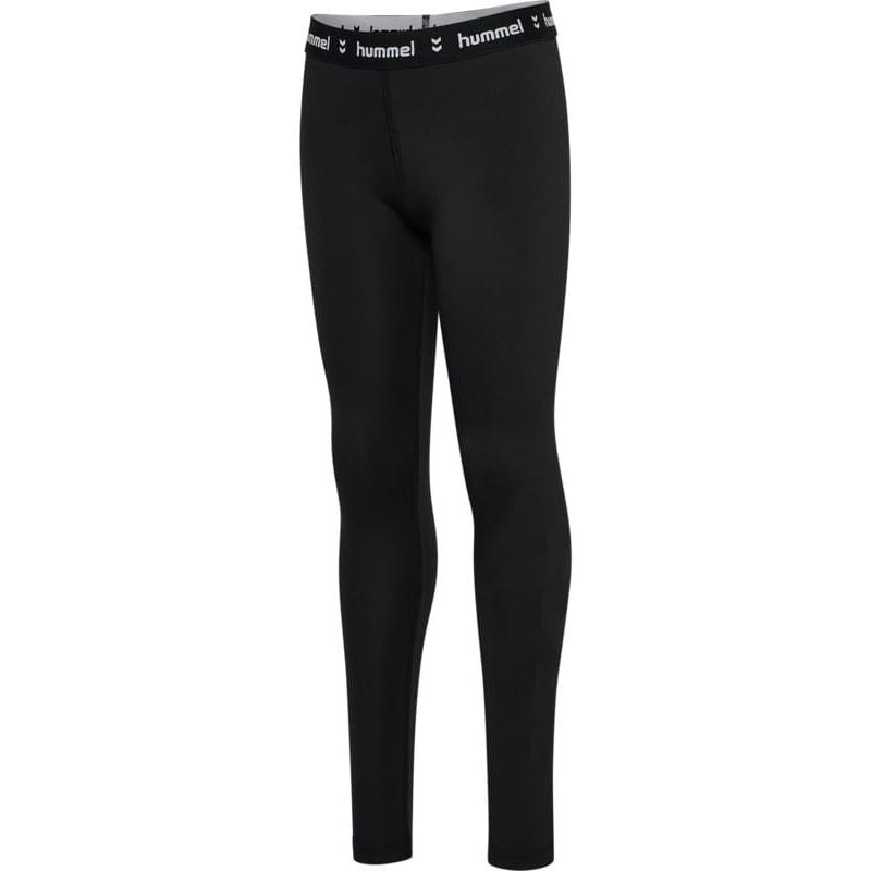 En barne-treningstights fra Hummel laget i glatt interlock-stoff med elastisk midje og tettsittende passform. Fargen Black er klassisk sort med Hummel-logo i midjen og OEKO-TEX®-sertifisering for trygg bruk.