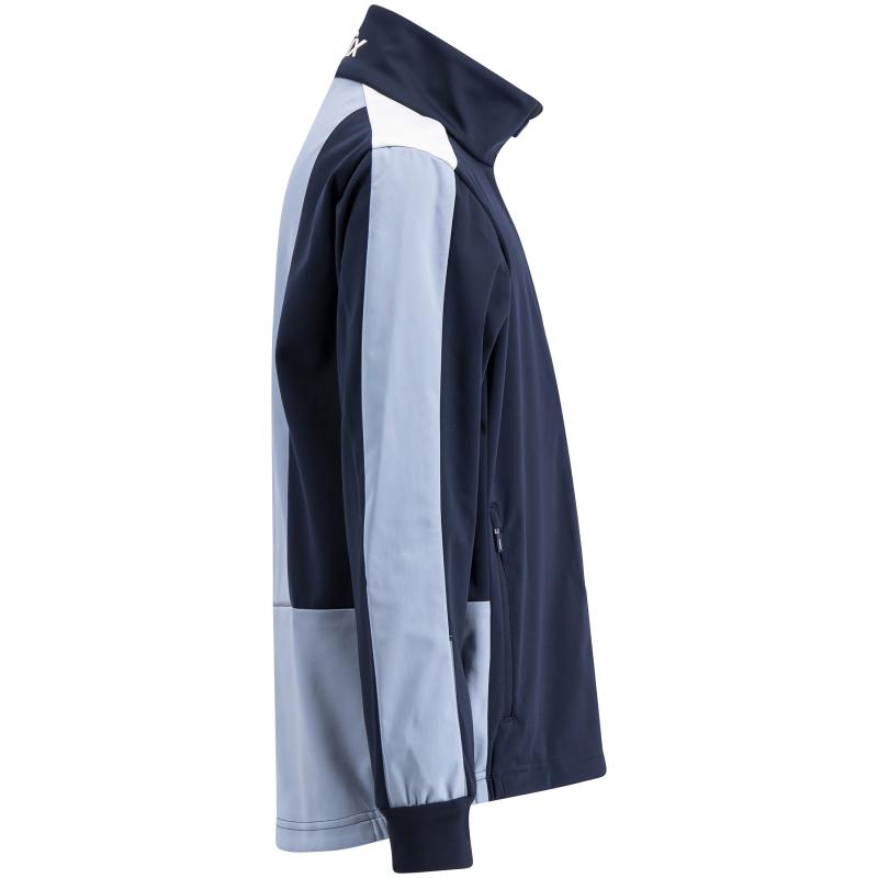 Klassisk langrennsjakke for aktive barn og ungdom i et elastisk softshellmateriale. I front av jakken er det vindavvisende membran i stoffet. mens det under ermer og i ryggen er uten. for god ventilering. Jakken er behagelig. holder på varmen og passer godt til intensive treningsøkter. Det er plassert refleksstriper for økt synlighet. Det er doble frontlommer og komfortabelt. børstet stoff på innsiden mot halsen.