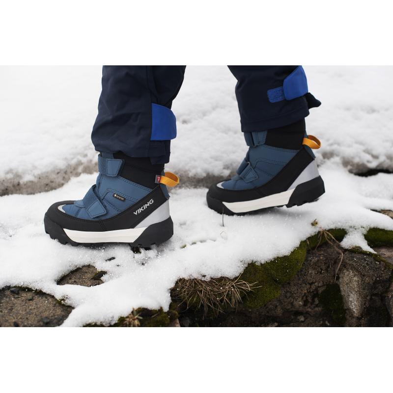 Gi barnet ditt det beste av det beste med denne utrolig varme og lette vinterstøvelen for barn, fullpakket med førsteklasses funksjoner og bærekraftige innovasjoner. Førsteklasses Primaloft Gold-isolasjon kombineres med lette og isolerende EVA-mellomsåler for å holde føttene beskyttet mot de kaldeste dagene uten å tynge dem ned. En vanntett GORE-TEX-membran sørger i mellomtiden for at de forblir tørre i all slags vær. Under forenes gummisåler og grove knaster for å gi et solid grep på alle underlag. I tillegg har en høy andel resirkulert innhold plassert Expower Warm GTX rett inn i Vikings «Less Impact»-produkter.