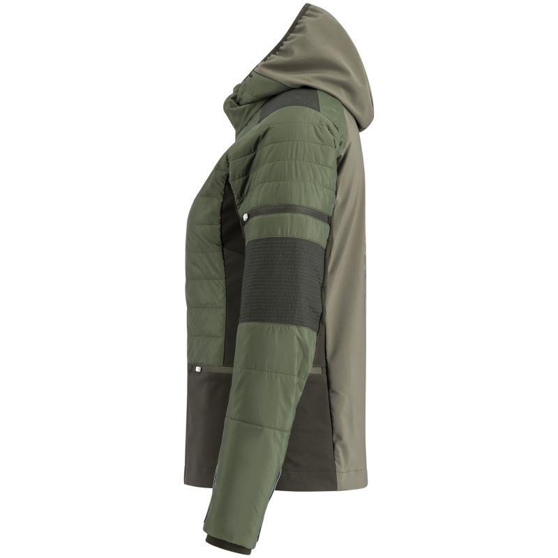Horizon skijakke er konstruert med smarte, tekniske løsninger og designet med et feminint snitt. Jakken er i front og på ermpanelene quiltet med Primaloft® som er svært vindavvisende og isolerende. Solide side-og bakpaneler i stretch softshell som tilbyr topp ventilasjon og gode, vindavvisende egenskaper. Uten membraner, noe som gir gode pusteegenskaper.