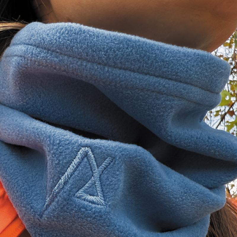 Myk og isolerende fleecehals laget av resirkulert polyester.