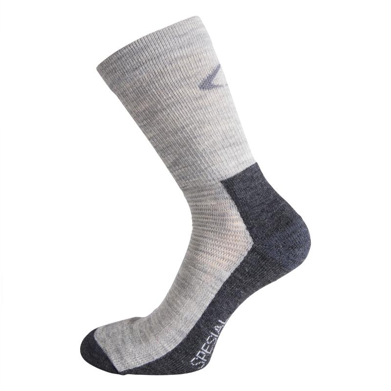 Spesial er en medium tykk helårs Merino ullsokk. Gode temperaturregulerende og fukttransporterende egenskaper gjør Spesial egnet for aktivitet sommer som vinter. Merinoullen er blandet med tekniske fibre for økt slitestyrke og perfekt passform. Frottering i sålen for ekstra varme og komfort. Perfekt som sokk nr. 2 på kalde dager. Størrelsemerking under sålen. Halvhøy.