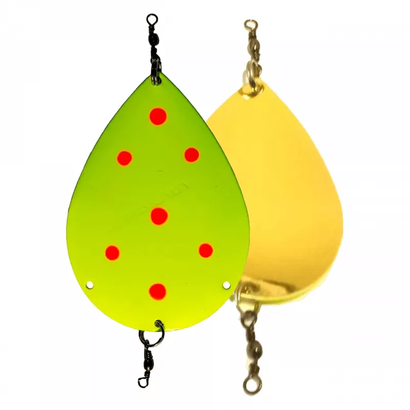 Søvik Dividalsblinken har en klassisk form og en rekke forskjellige fargevarianter. Baksiden av blinkene er også dekorert med røyas egne gytefarger, noe som er med på å trigge fisken til hugg.