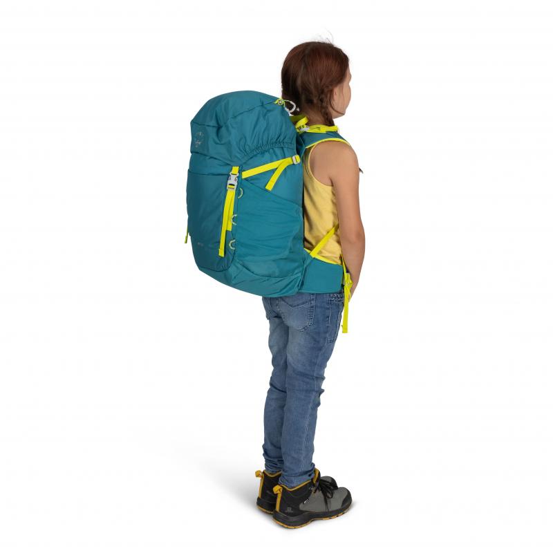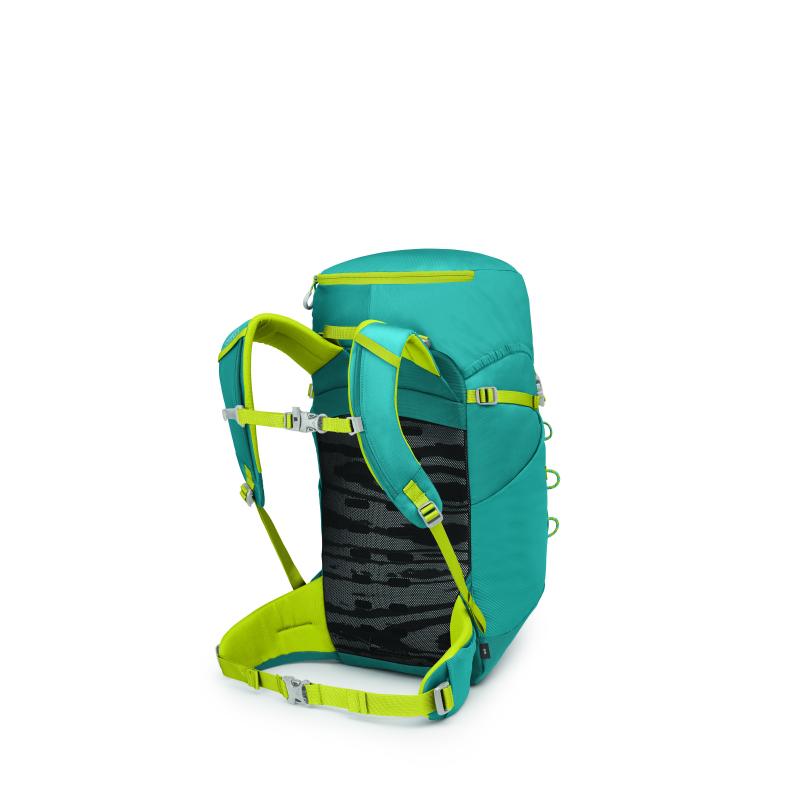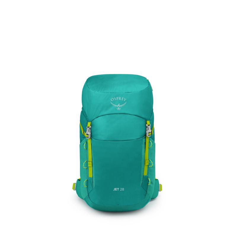 Osprey Jet 28. Ryggsekk for barn med komfort og funksjonalitet. Osprey Jet 28 er en ryggsekk som gir barn og unge turgåere muligheten til å bære sin egen oppakning på dagsturer og utflukter. Med et romslig hovedrom, ventilerende AirScape™-ryggpanel og flere smarte lommer blir den en perfekt følgesvenn for aktive barn. Jet 28 er laget av slitesterke, resirkulerte materialer og er kompatibel med Osprey Hydraulics™-drikkeblære