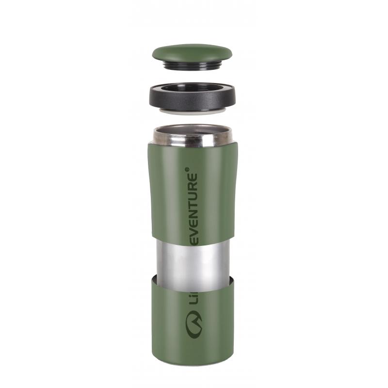 Dette er en praktisk termokopp med tett lokk og meget god drikkekant. Lifeventures Thermal Mug holder varmen i fire timer. Koppen er fin å bruke til både skole. arbeid. tur. jakt og fiske. og den passer til de fleste kaffemaskiner. Den vide åpningen på koppen gjør den enkel å rengjøre. Vakuumet mellom ytter-og innervegg hindrer varmetap. Koppen har tett skrukork med trykkregulering.