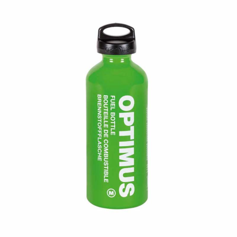 En solid brennstofflaske med barnesikring, epoxybelegg og høy trykkmotstand, egnet for alle typer flytende brensel. Den grønne fargen og metallkorken gjør den lett gjenkjennelig i felt.