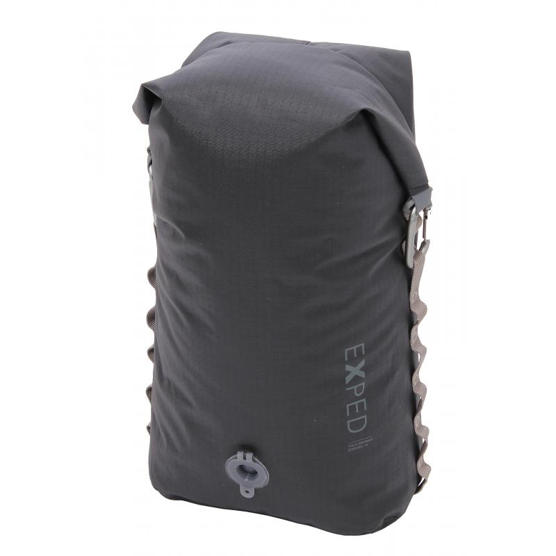 Fold-Drybag Endura er en svært robust. vanntett tung pakksekk laget av slitesterkt ripstop-stoff. Den praktiske ovale formen hindrer dem i å rulle rundt når de lagres i en båtens baug for å spare plass.I tillegg til det solide stoffet kommer Fold Drybag Endura med en uknuselig karabinkrok rulltopplukking. De kan lukkes på vanlig måte ved å rulle toppen. eller festes stramt på sidene.Praktiske daisy chains gir flere festemuligheter. På grunn av den slanke. kompakte formen kan Fold-Drybag Endura også festes foran på en ryggsekk.Den integrerte og pålitelige EXPED Flat Valve forenkler og fremskynder komprimering.Det slitesterke ripstop-stoffet med hvit TPU-filmbelegg holder seg vanntett med en vannsøyle på 10 000 mm. Det hvite indre belegget gir god oversikt.