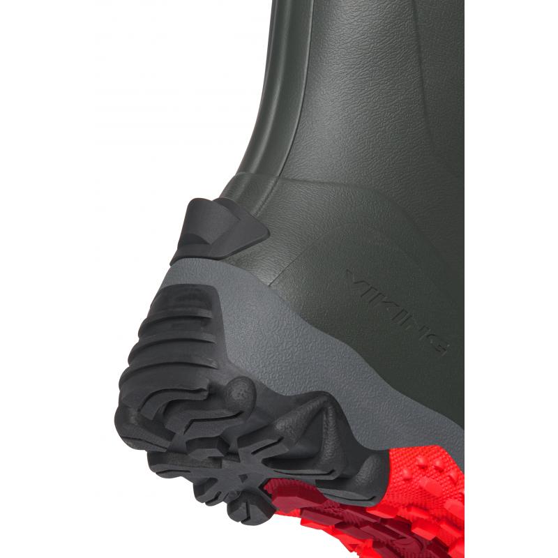 Vikings Trophy – støvel er en prisbelønt kundefavoritt fra år til år som tilbyr den ultimate ytelsen på gjørmete stier og ulendt terreng med kamuflasjemønster. Disse støvlene er laget av en gummiblanding med lav tetthet som letter støvelens totale vekt uten at det går på bekostning av kvaliteten. Støvelen består av gummi med et tredobbelt lag gjennom foten som gir økt stabilitet og holdbarhet. Trophy Camo har et høyt skaft og justerbar kilestropp som sitter på toppen av støvelen for å kjempe mot elementene og holde deg tørr med en sikker passform. Disse støvlene er designet for jegere og er utstyrt med Vikings unike UGC®-såle. En robust yttersåle med dype flerdireksjonelle klaffer som dekker yttersålen, til og med buen, for et perfekt grep utendørs. Skaftet er foret med en slitesterk og hurtigtørkende polyesterforing. Den konturformede EVA-innersålen er designet for komfort hele dagen og er avtagbar for rask tørking. Denne støvelen har en standard passform i hele skaftet og ankelen med et mer romslig fotområde.