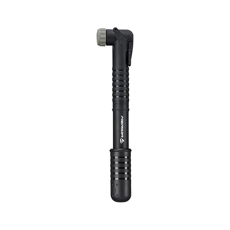 Compakt minipumpe fra Merida. Pumpen passer både presta og bilventil, og kommer med et brukervennlig feste.
